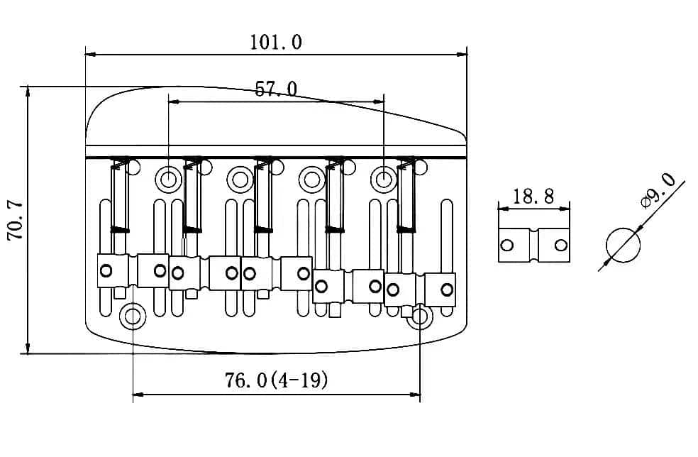 – Puente fijo de bajo de 5 cuerdas para guitarra eléctrica con sellos de estilo barril clásico.