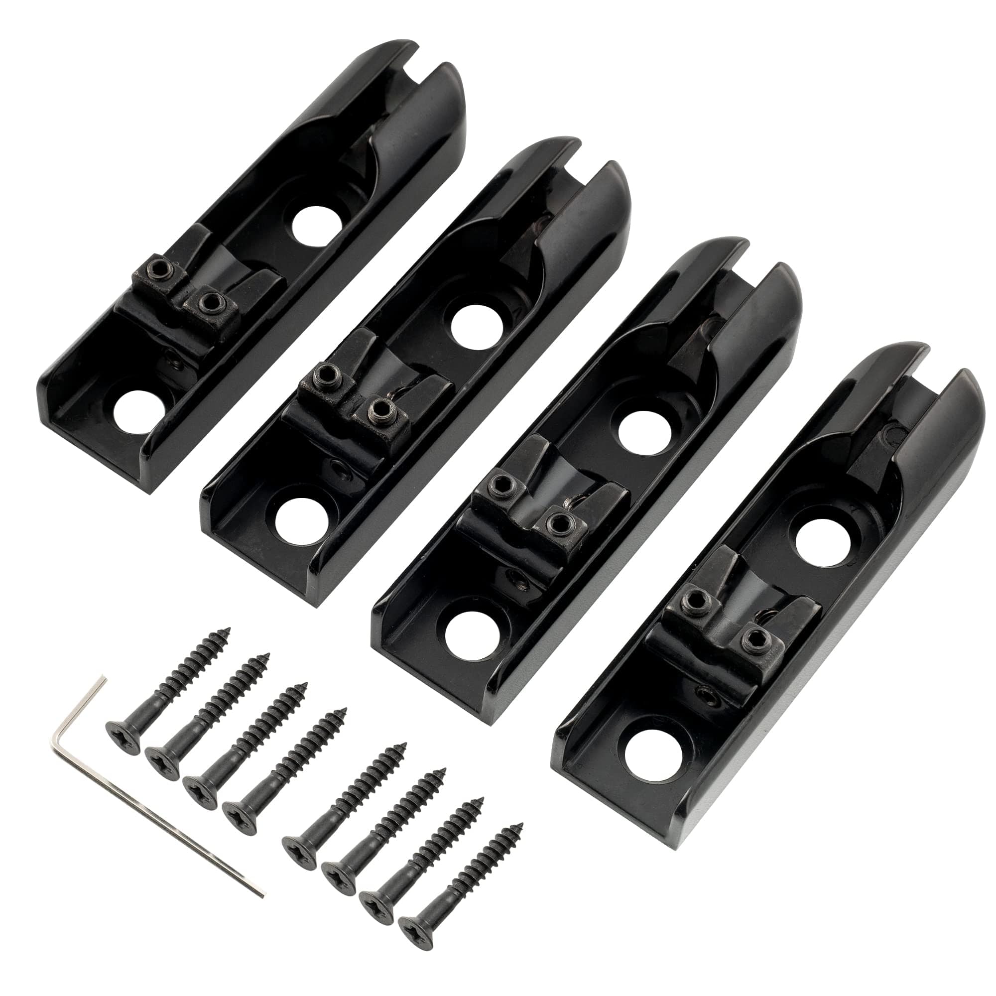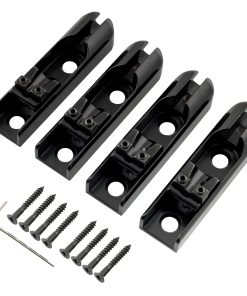 Puente Individual para Bajo Musiclily Pro con Bloqueo de Cuerda Individual para Bajo Eléctrico de 4 Cuerdas, Negro (Juego de 4). Se adapta a algunos bajos para crear su propia configuración de puente de cuerda individual con cualquier espaciado de cuerda o longitudes de escala escalonada, juego completo para bajo de 4 cuerdas. Longitud: 61mm (2-13/32 pulgadas), ancho: 15.5mm (39/64 pulgadas), espaciado de tornillos de montaje: 31mm (1-7/32 pulgadas). Permite cualquier espaciado de cuerda tan bajo como 15.5mm (39/64 pulgadas). Placa de acero con sillín de aleación de zinc, para uso combinado de carga superior y cuerda a través del cuerpo. Te brinda la libertad de crear tus propias cuerdas, por favor revisa la imagen del tamaño antes de comprar. El paquete incluye: 4 puentes individuales y accesorios de montaje.