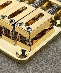 Para guitarras estilo Strat con puente fijo no tremolo que tienen montaje de cuerda a través del cuerpo. Selleta de acero. La entonación de la selleta se puede ajustar individualmente. Tornillos de montaje incluidos. Hardware incluido.