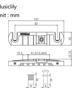 2. Espacio entre cuerdas de 52 mm, espaciado entre postes de 82 mm, poste con rosca métrica estándar M8 y diámetro exterior de 12 mm para casquillo de poste.