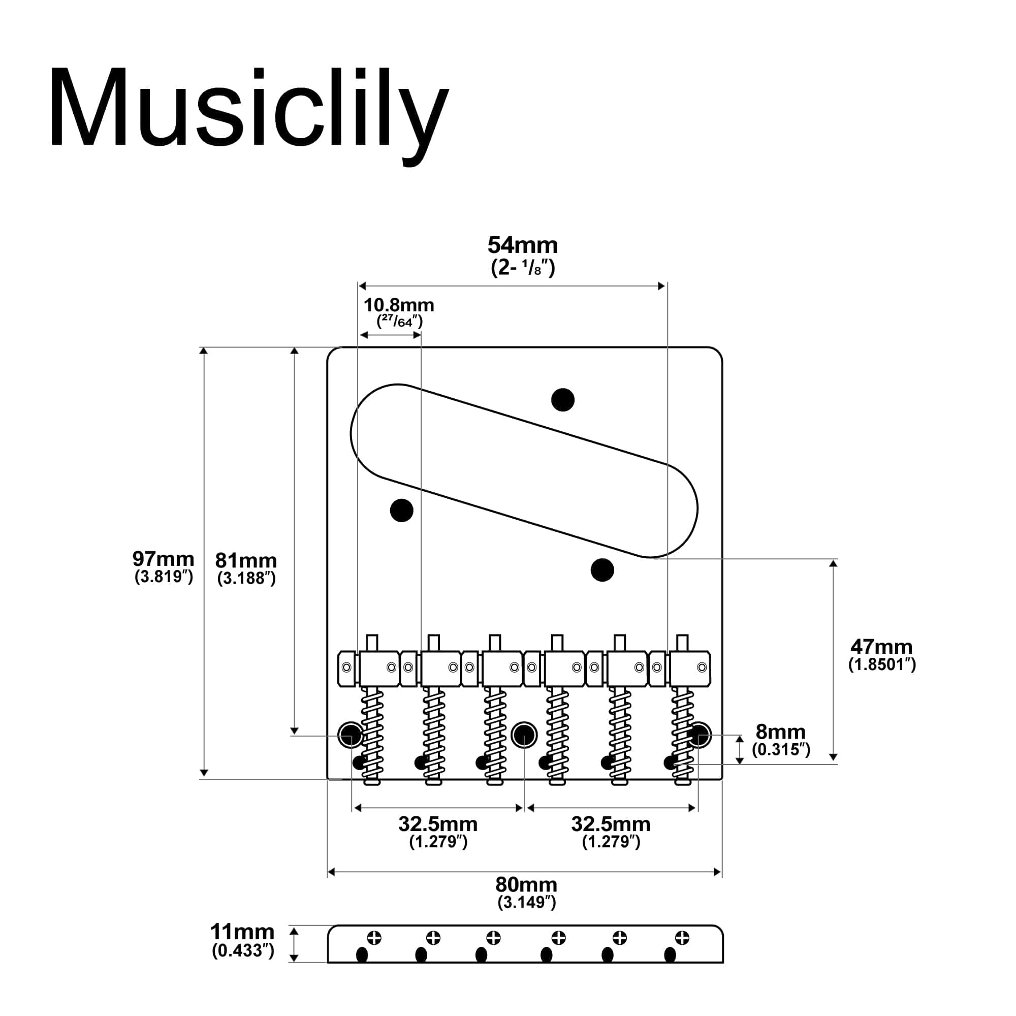 Puente Telecaster Moderno de 54mm de Musiclily Pro con