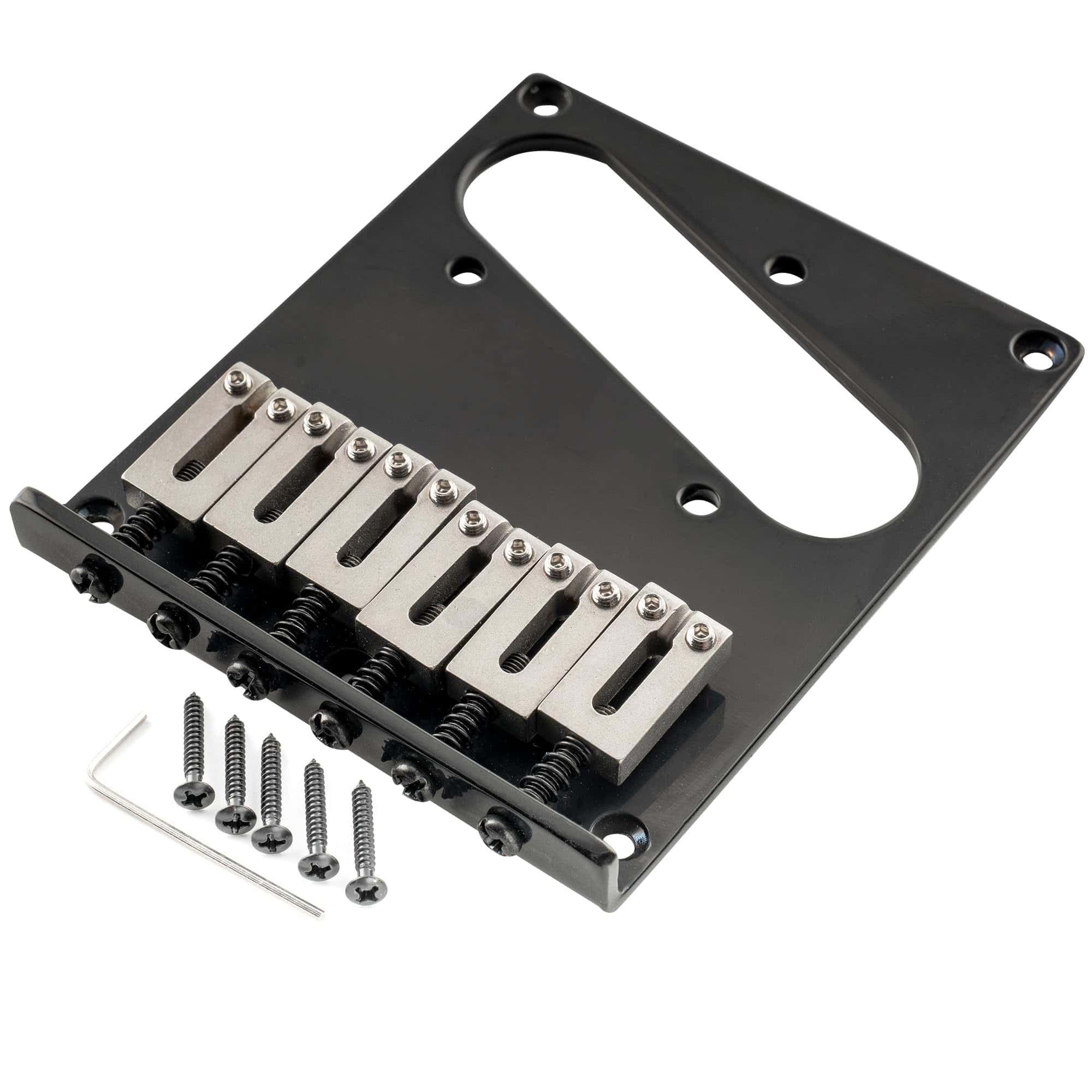 Puente Telecaster Moderno de 54mm Musiclily Pro con 6 Selletas de Acero Inoxidable SUS para Fender Squier Tele Guitarra Eléctrica Estilo, Negro.