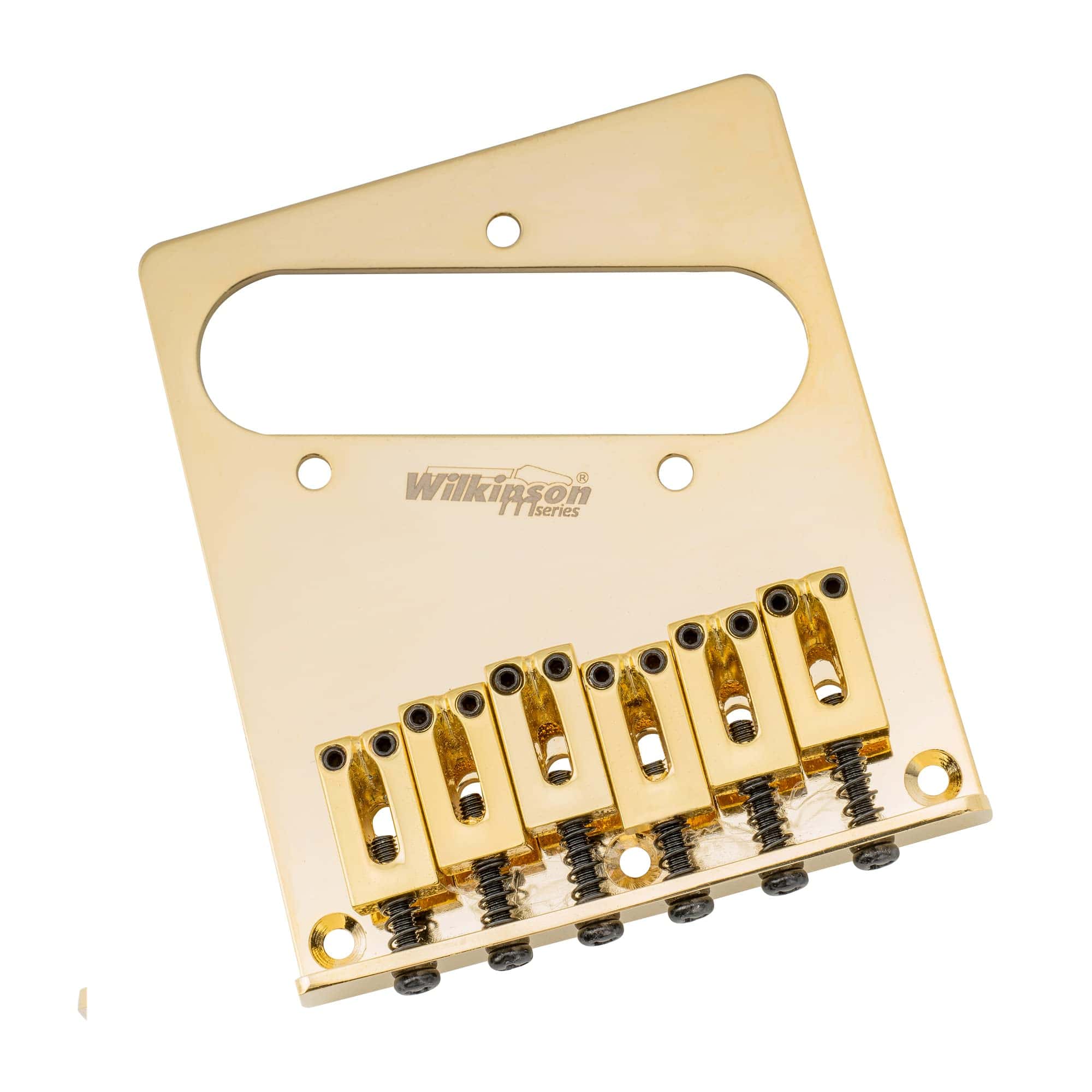 Wilkinson WOT03 52.5mm (2-1/16 pulgadas) Puente Telecaster Moderno de 6 selletas para Guitarra Eléctrica Tele estilo TL American Standard, acabado en oro. Adecuado para Teles americanas estándar, deluxe y elite. Por favor, verifica las especificaciones antes de la compra para asegurarte de que sea compatible con tu guitarra Telecaster.