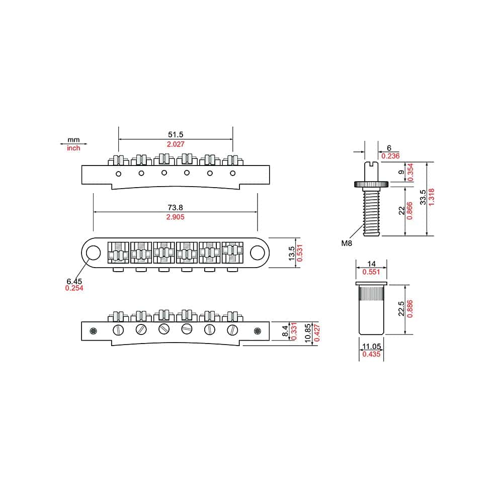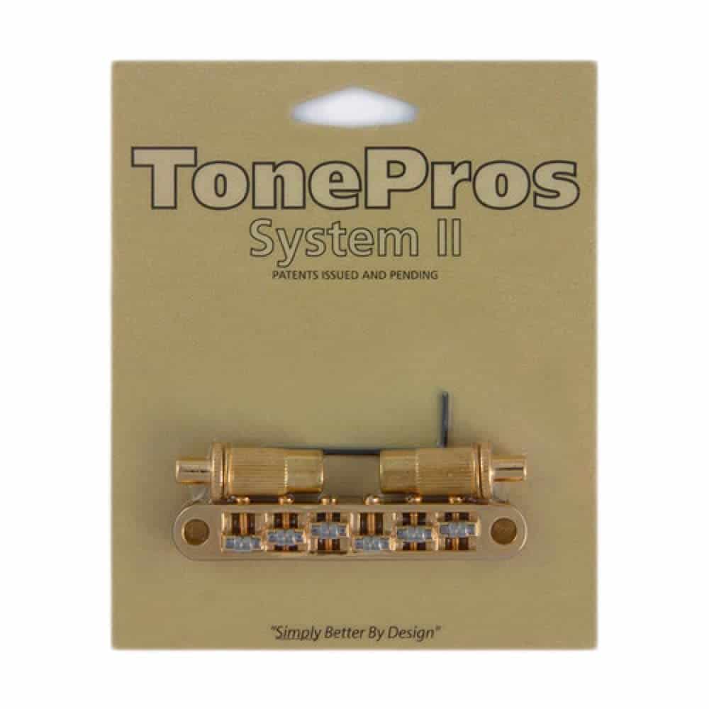 TonePros Puente Metric Tune-O-Matic Con Postes Grandes y Selletas de Rodillo El TPFR de TonePros es un puente estilo Nashville con bloqueo y tornillos de ajuste de silla plana, selletas de rodillo «Roller» de TonePros, postes grandes y rosca métrica. Las selletas de rodillo de diseño TonePros están diseñadas para permitir que las cuerdas se deslicen suavemente, mientras que el sistema patentado de TonePros bloquea el puente sólidamente en su lugar permitiendo que las cuerdas siempre vuelvan exactamente afinadas cuando se usa la palanca de trémolo. Los usuarios de Bigsby y otros trémolos adorarán este producto de TonePros, ya que les permitirá usar su trémolo a menudo sin la preocupación de desafinar. Este modelo se ajusta a la mayoría de las guitarras fabricadas en el extranjero. Qué Hacen los Componentes de TonePros Por Ti:¡Los componentes de TonePros solidifican completamente tu instrumento! ¡Tu puente System II no solo se mantendrá en su lugar, nuestro sistema solidifica tu puente como una roca! En la mayoría de los casos, después de la instalación y ajuste, tu puente y cordal no se moverán ni se «mecerán» en absoluto. Debido al diseño de TonePros, incluso el juego o movimiento en los hilos se reduce para que cuando ajustes tu acción e intonación, quede fijo y sólido. Esto, por supuesto, mejora tu sostenimiento y cualidades tónicas, hace que los armónicos salten de tu guitarra, y hace que tu instrumento toque y se mantenga afinado mejor. Usa Tu Instrumento Vintage: ¡Ahora es posible para los músicos usar realmente sus instrumentos «vintage» sin el miedo de rayarlos y modificarlos y aún obtener resultados óptimos. Vuelve a poner esos componentes vintage en la funda donde pertenecen para preservarlos mientras tocas tu guitarra favorita con mejores cualidades tónicas. Simplemente reinstala los componentes antiguos y preservados cuando vayas a mostrar o vender ese instrumento especial. Instrumentos Nuevos: Si tu instrumento nuevo o recientemente comprado no vino con componentes System II instalados en la fábrica, simplemente reemplaza tu puente y cordal actual con nuestros componentes mejorados. Simplemente ajusta y luego asegura con la herramienta Allen proporcionada, y tu guitarra tocará de forma