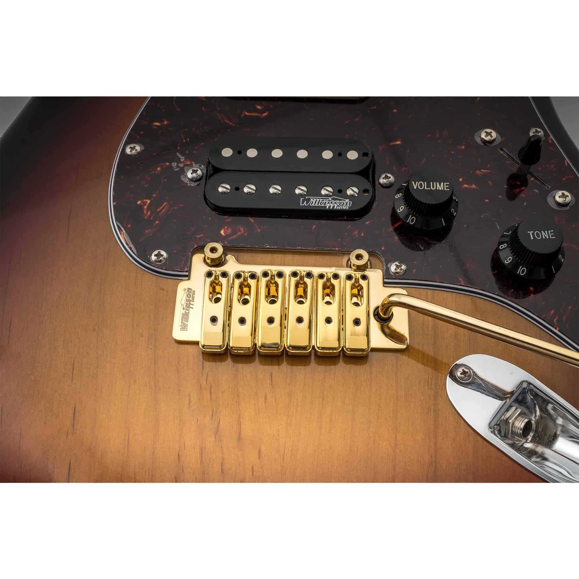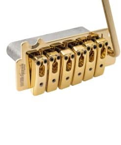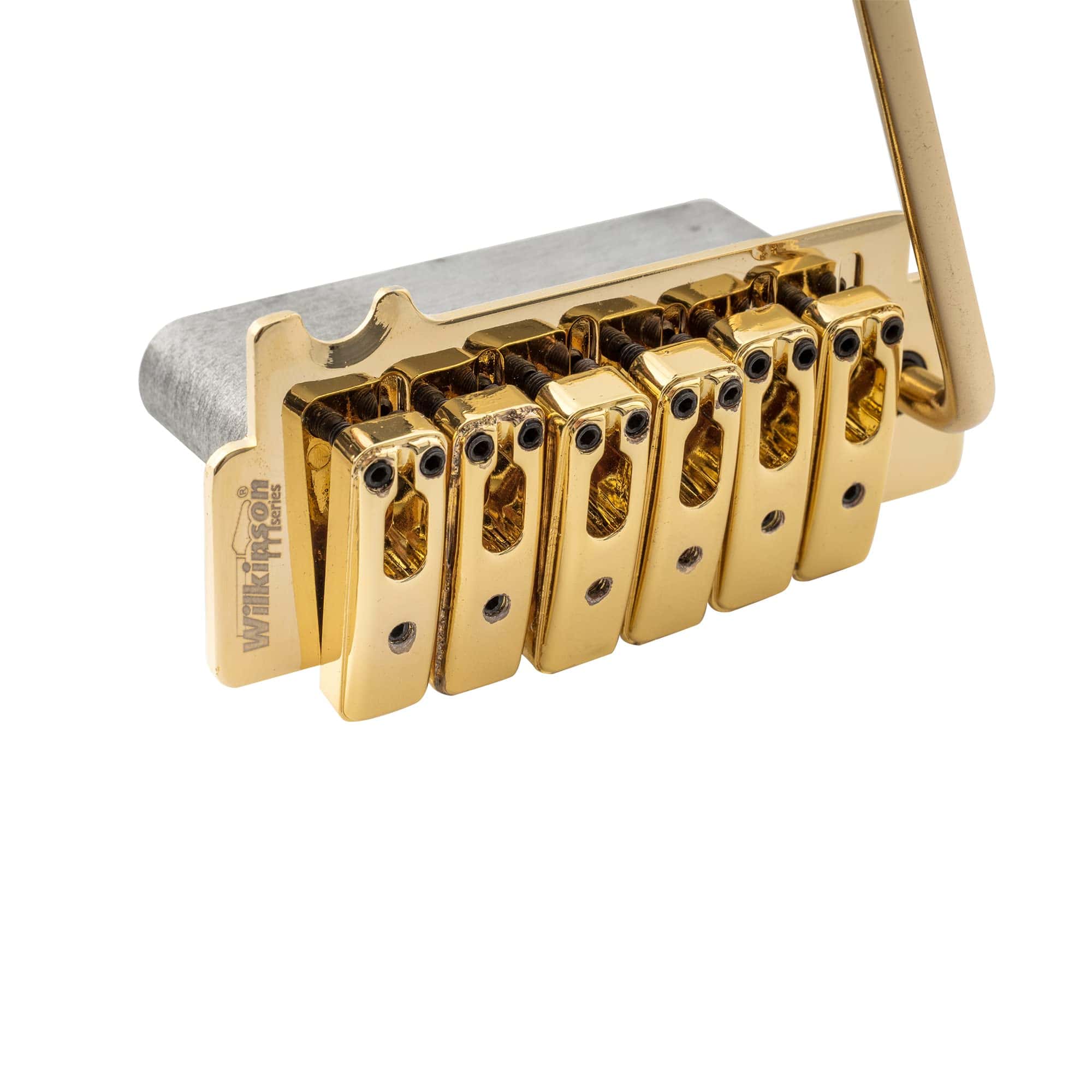 Wilkinson WOV10 de 52,5 mm (2-1/16 pulgadas) Puente trémolo de dos puntos individual para guitarra eléctrica Squier/Mexico Fender Strat, color oro.