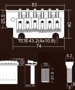 Puente de guitarra after market con bloqueo. Este puente tremolo de guitarra estilo Strat de 2 puntos de KAISH en color negro es el complemento perfecto para tu guitarra. Con un acabado de calidad y fabricado en aleación de zinc, este puente ofrece una sensación moderna con un aspecto clásico de Stratocaster. Su tremolo sincronizado de 2 puntos con brazo tremolo ajustable garantiza una experiencia de juego suave y precisa. Con un espaciado de cuerdas de 10,8 mm y una distancia de 56 mm entre dos postes, este puente se ajusta fácilmente a tu guitarra. Asegúrate de verificar las dimensiones antes de realizar la compra para garantizar la compatibilidad.