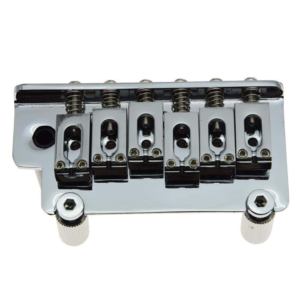 Puente de guitarra de posventa. Este puente tremolo Dopro es una excelente opción para aquellos que buscan mejorar su guitarra con un sistema de bloqueo de alta calidad y un diseño moderno. Con un acabado cromado y construido con aleación de zinc duradero, este puente tiene un aspecto elegante y garantiza una excelente respuesta tonal. Se adapta a guitarras con puente de trémolo de estilo 2 puntos y presenta un trémolo sincronizado con brazo ajustable para una sensación moderna pero clásica. ¡Añade este puente a tu guitarra y disfruta de un mayor rendimiento y estabilidad!