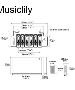 Puente tremoló Wilkinson WVS50K de 54 mm con bloqueo de silla para guitarra eléctrica estilo Squier Strat, Negro. Se adapta a algunas Squier Strat de cuerpo grueso y a muchas guitarras estilo Strat hechas en Japón/Corea/China/Taiwán. Fabricado con piezas genuinas de Wilkinson en Corea y distribuido por Musiclily. Incluye conjunto completo de puente y accesorios de montaje para una instalación sencilla y eficaz. Las selletas de aleación de zinc con característica de «bloqueo» proporcionan un sustain mejorado y constante. Perfecto para guitarristas que buscan una actualización de calidad para su instrumento. Asegúrese de verificar el tamaño de su guitarra y puente antes de realizar la compra para una compatibilidad óptima.
