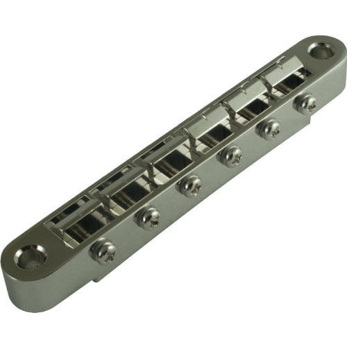 Puente Una versión moderna del puente estilo Tune-o-matic para guitarra sólida. Selletas pre-cortadas con un tornillo de entonación individual retenido por mini tuercas hexagonales para cada una. Estilo de montaje de poste estándar y presenta selletas de zinc duro. Incluye hardware.