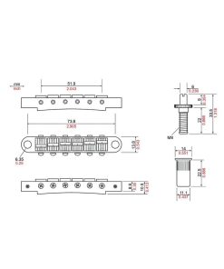 Puente Tune-O-Matic TonePros métrico con postes grandes y selletas entalladas. Modelo que se ajusta a la mayoría de las guitarras fabricadas en el extranjero.