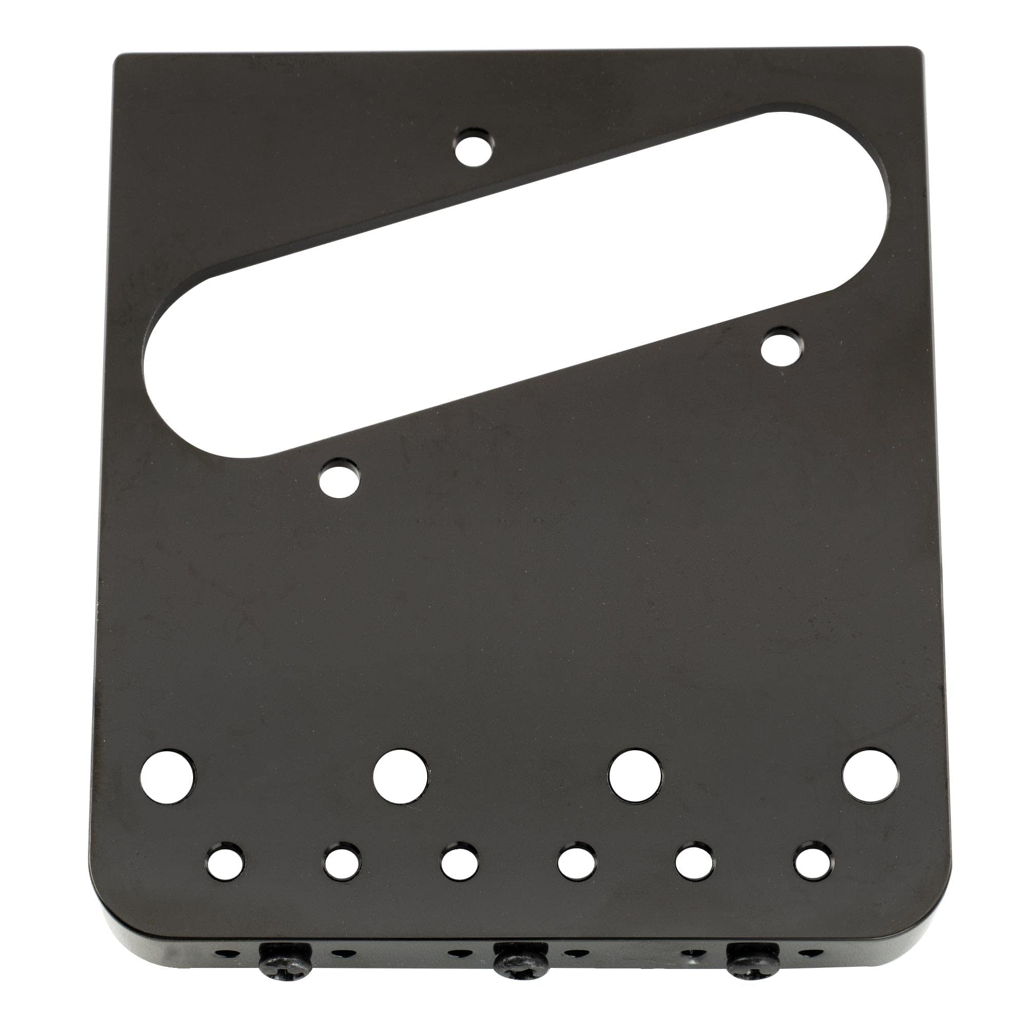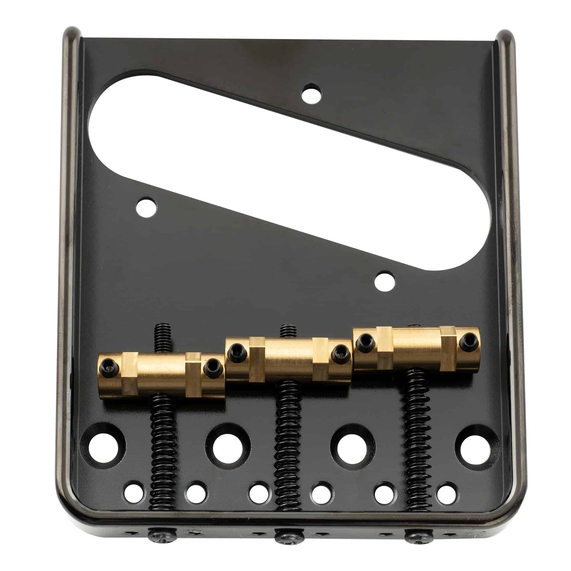 Puente Vintage Tele de 54 mm (2-1/8 pulgadas) de Espaciado de Cuerdas de Placa de Aluminio Sólido Completo con Compensación de Latón de 3 Selletas para Estilo Tele, Negro.