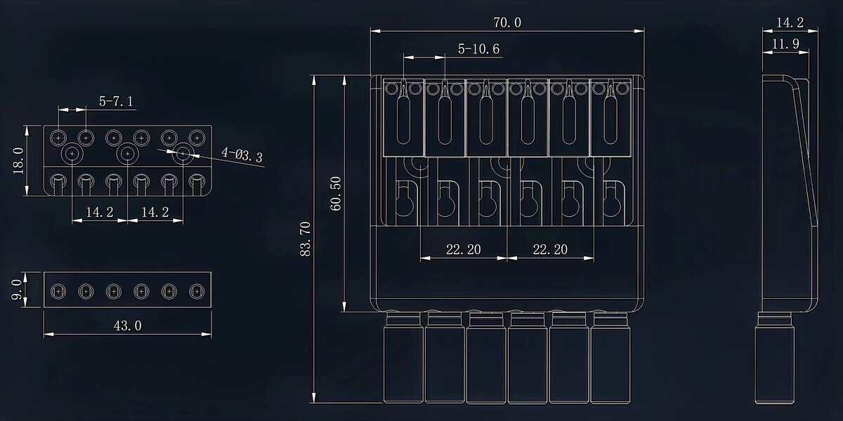 Puente y Bloque de Cuerdas Guyker para Guitarra Headless de 6 Cuerdas: Este kit incluye un puente de guitarra de 6 cuerdas y un bloque de cuerdas diseñados especialmente para guitarras headless. Son puentes de reemplazo/actualización que ofrecen una instalación fácil y un acceso sencillo. Con accesorios completos y una excelente mano de obra, este set es perfecto para aquellos que buscan mejorar su guitarra headless. El tamaño del puente es de aproximadamente 70 x 60.5mm (2.76 x 2.38 pulgadas) y la separación entre cuerdas es de 10.6mm (0.42 pulgadas). Antes de realizar su pedido, por favor consulte el dibujo de parámetros en las imágenes adjuntas para asegurarse de que se adapte perfectamente a su guitarra.