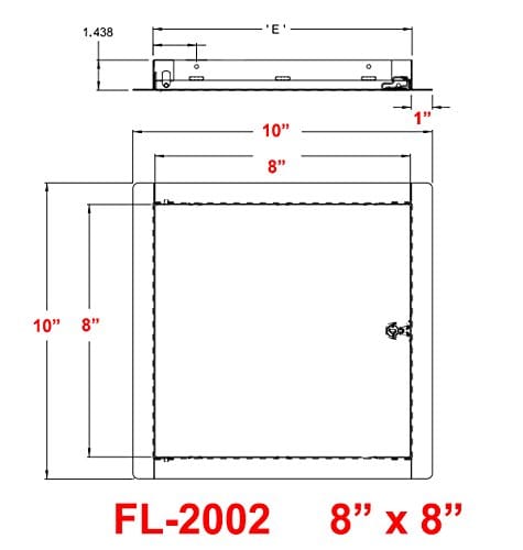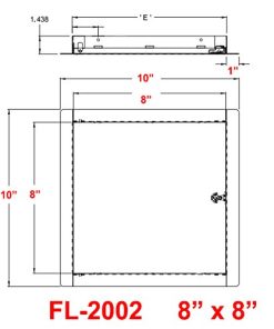 La puerta de acceso universal Premier FL-2002 de 8 x 8 pulgadas se puede utilizar en cualquier superficie enrasada. Se instala fácilmente en paredes o techos para permitir el acceso a la fontanería o cableado. Cuenta con bisagra oculta, brida exterior de 1 pulgada de ancho con montaje de 1-1/2 pulgadas de profundidad. La abertura bruta en la pared debe ser de 8-3/8″ x 8-3/8″