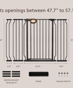 Puerta extra alta y extra ancha de owile para escaleras y puertas. Incluye 3 extensiones, se extiende de 47 a 57 pulgadas de ancho y la puerta de apertura es de más de 20 pulgadas de ancho para un fácil acceso. Perfecto para una variedad de áreas interiores y exteriores. Por favor, asegúrese de medir el espacio en su hogar antes de comprar para garantizar que la puerta se ajuste perfectamente.