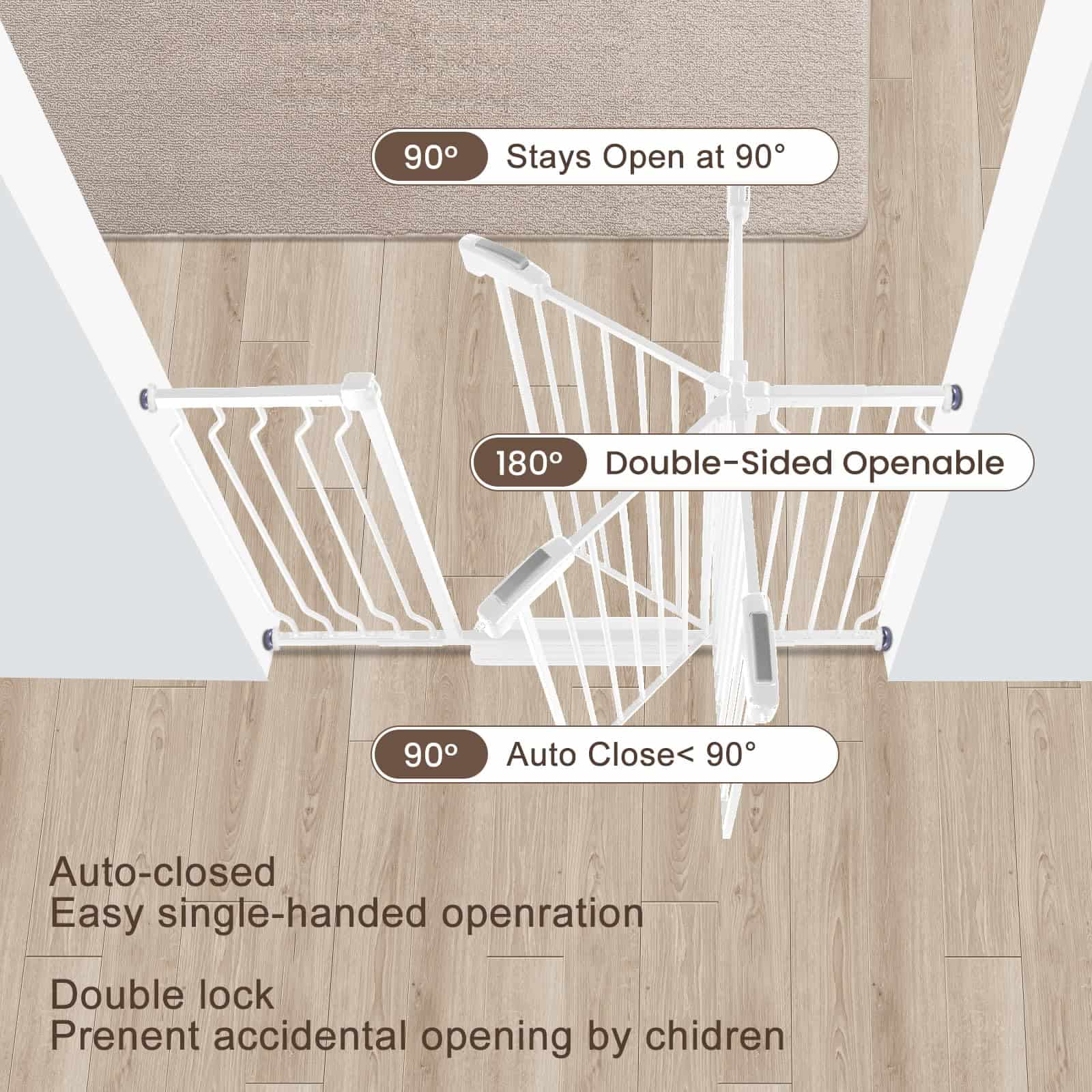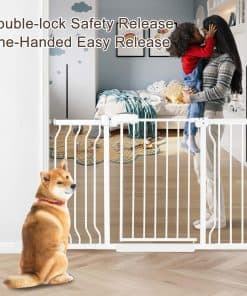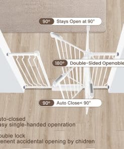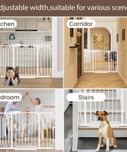 Nuestras puertas de bebé para puertas también funcionan como puertas para perros en interiores, lo que las hace perfectas para los dueños de mascotas también. La puerta de seguridad es un imprescindible para cualquier hogar con escaleras o puertas que podrían representar un peligro para la seguridad.