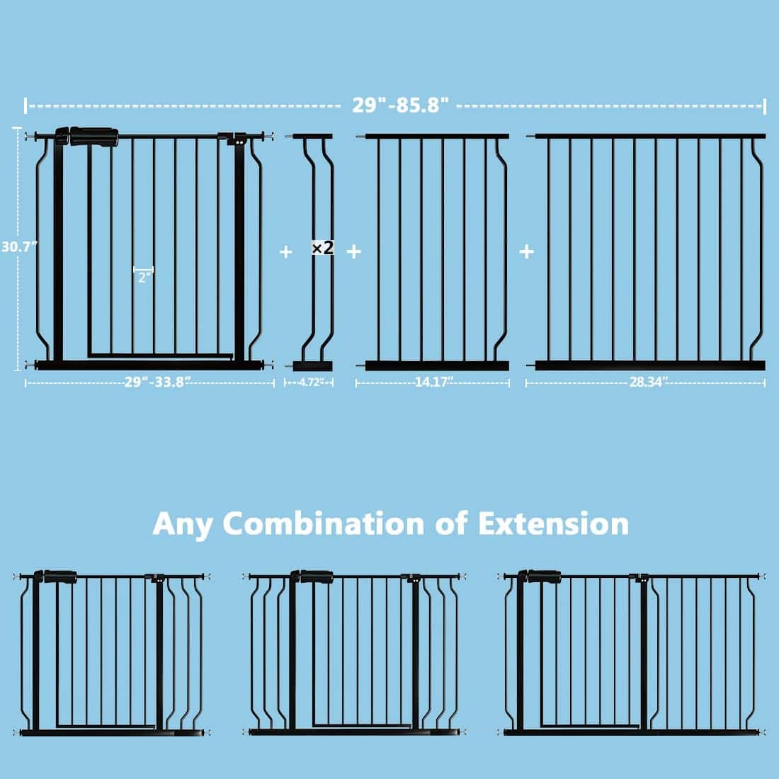 1. Puerta extra ancha y ajustable en anchura – La puerta de bebé TSAYAWA cuenta con un diseño extra ancho que se puede ajustar con varias extensiones, permitiendo aberturas de hasta 85.8 pulgadas de ancho. Perfecta para cualquier espacio en su hogar, proporciona seguridad sin comprometer la accesibilidad.