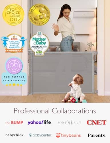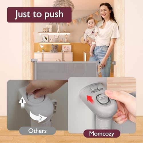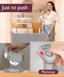 Puerta de Bebé Retráctil Momcozy, 33″ de Altura, se