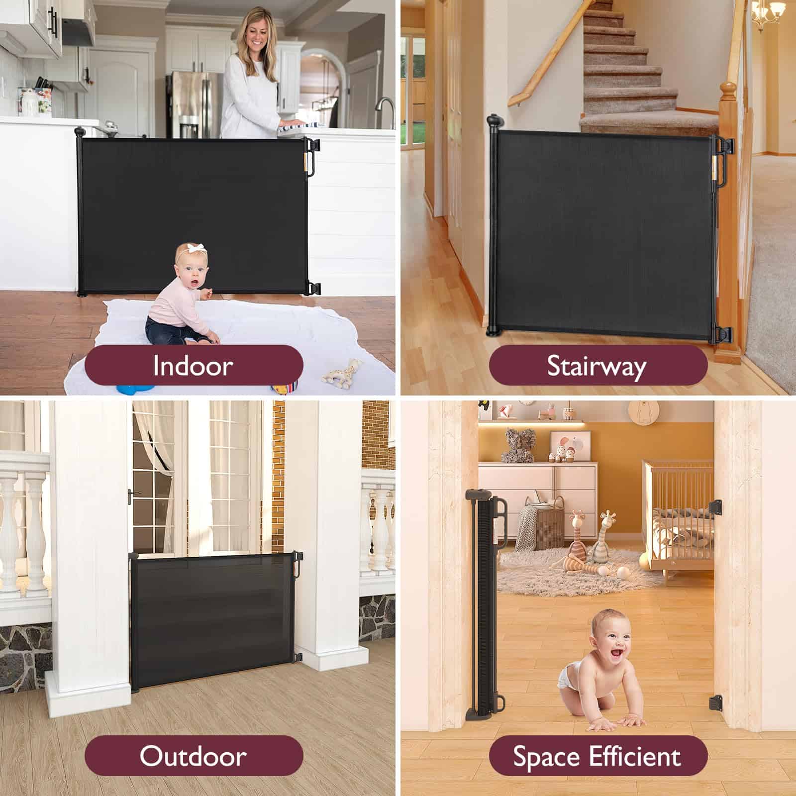 Puerta de Bebé Retráctil, Momcozy Extra Ancha Malla de