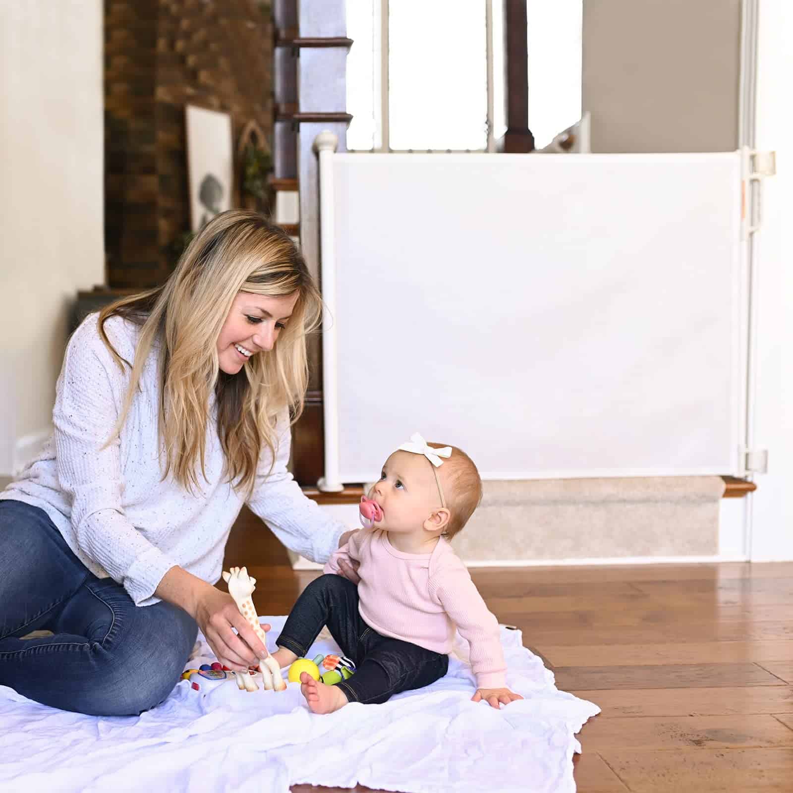 Puerta de bebé retráctil, Momcozy Extra Ancha Mallas