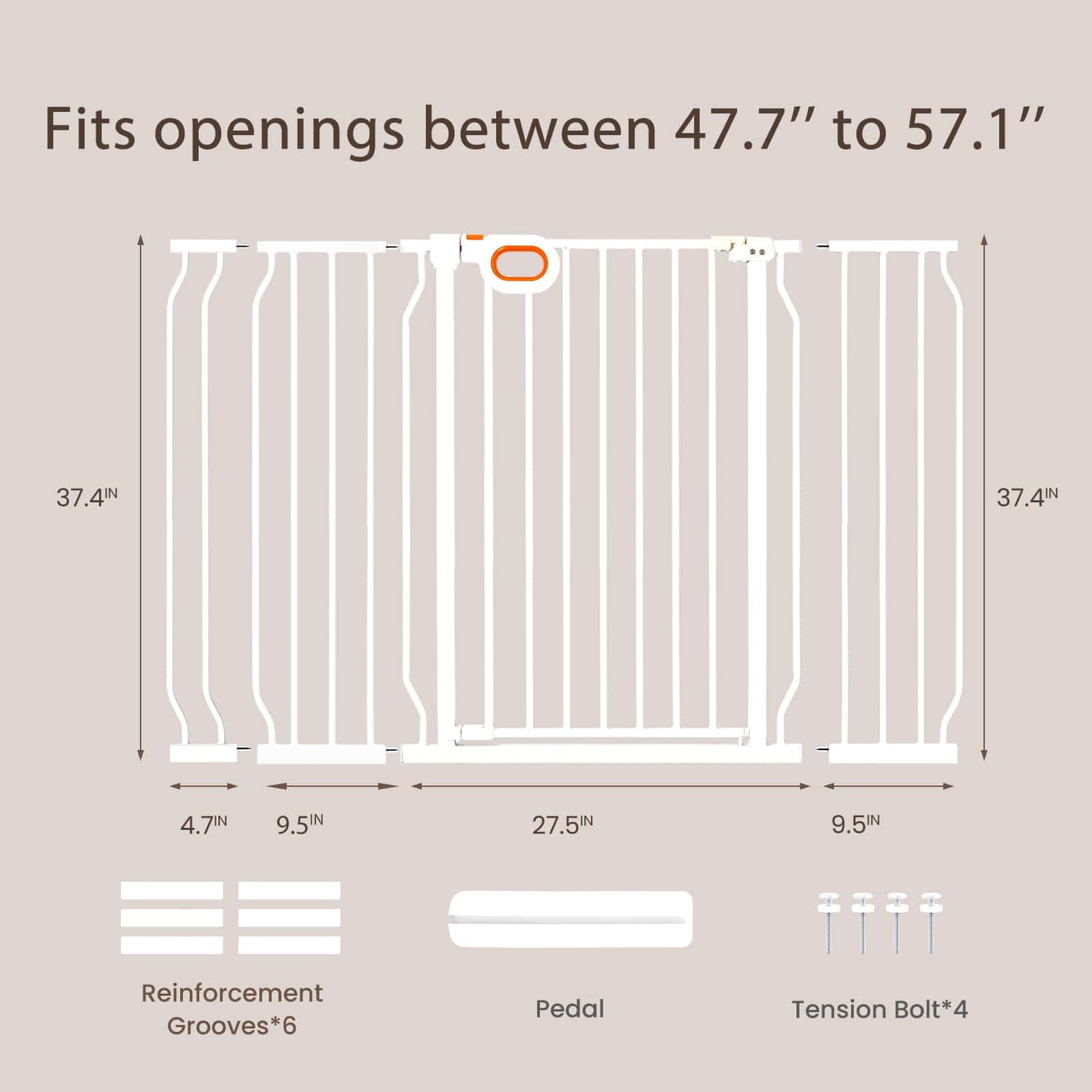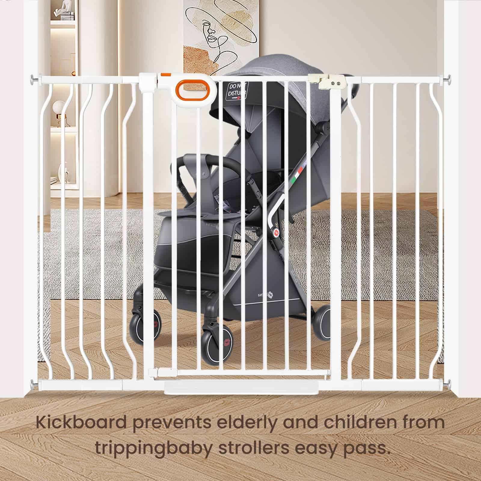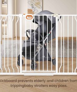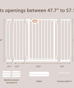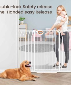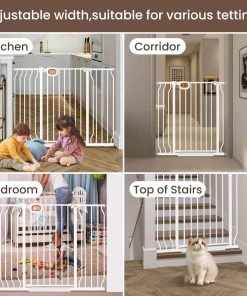 Puerta de seguridad extra alta y ancha owlie de 37.4″ para escaleras y pasillos, Puerta de Bebé Extra Grande y Larga de 47-57 Pulgadas con Puerta Interior de Metal de Seguridad Montada a Presión para Mascotas con Cierre Automático, Blanco. Esta puerta de bebé extra alta y ancha owlie para escaleras y pasillos tiene una altura de 37.4″, que puede evitar que el gato y la mascota pequeña salten, incluye 3 extensiones, se extiende de 47 a 57 pulgadas de ancho, y la puerta de apertura es de más de 20» de ancho para un fácil acceso. Adecuado para una variedad de áreas interiores y exteriores. Asegúrese de medir el espacio en su hogar antes de comprar para garantizar que la puerta encaje perfectamente. La puerta de bebé extra ancha owlie para escaleras y pasillos cuenta con un acabado resistente a los arañazos y tubos de acero engrosados para proteger a sus pequeños gateadores curiosos o trepadores juguetones. Las puertas de bebé también se pueden usar como puertas para mascotas/gatos/perros en la casa para resistir un impacto de hasta 180 libras. Los adultos pueden abrir fácilmente la puerta de bebé para escaleras con una mano, es fácil de abrir y cerrar. Perfecto para escaleras, puertas o pasillos, creando un entorno de crecimiento seguro. Cuando la apertura de la puerta es inferior a 90 , la puerta se cerrará automáticamente para facilitar el paso con una sola mano mientras se sostiene al bebé. Además, las puertas de bebé con paso por el medio para puertas cuentan con una apertura bidireccional de 180 al pasar. Esta puerta de bebé extra grande y larga para escaleras utiliza un diseño montado a presión, eliminando la necesidad de herramientas adicionales o perforación de paredes durante la instalación. Nota: No corte el enlace en la puerta de apertura antes de que la instalación esté completa, de lo contrario la instalación será difícil.