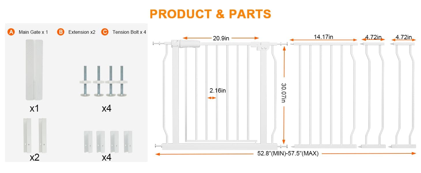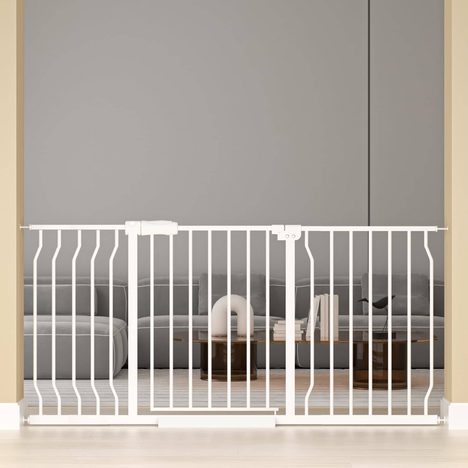 Diseño de puerta de seguridad para bebés montada a presión con sistema de doble bloqueo para limitar el acceso de niños o mascotas y mantenerlos seguros. La puerta se cerrará automáticamente cuando se suelte el mango. Diseño de doble cara que te permite abrir en cualquier dirección. La distancia de 2 pulgadas entre las barras verticales puede evitar que tus bebés y mascotas se salgan o se queden atrapados. Varios anchos para elegir: nuestra puerta de seguridad para bebés tiene varios anchos para elegir: diferentes tamaños con diferentes paneles de extensión, todos los tamaños se pueden ajustar fácilmente, se adapta a espacios estrechos o anchos de 24 a 81 pulgadas. Características de la puerta de seguridad para niños de HOOEN: Puerta oscilante ancha para que los adultos puedan pasar fácilmente. Se adapta a aberturas estrechas a anchas entre 24 y 81 pulgadas. Diseño de doble cara y cierre automático. Operación con una sola mano con función de presionar y levantar. Instalación fácil montada a presión sin herramientas de hardware para proteger la pared. Construcción metálica resistente y de alta resistencia. Instalación fácil: esta puerta de bebé montada a presión es súper fácil y rápida de instalar y quitar. Lo único que necesitas hacer es ajustar las 4 varillas del husillo de forma independiente a la pared. Si eliges el tamaño con paneles de extensión, es muy simple agregarlos. Simplemente usa los tornillos que aseguran la puerta en el extremo exterior de la extensión y empújalos hacia la puerta hasta que estén apretados. Multifunciones: adecuado para escaleras, pasillos, puertas, cocina, salas de estar y cualquier espacio abierto al aire libre.
