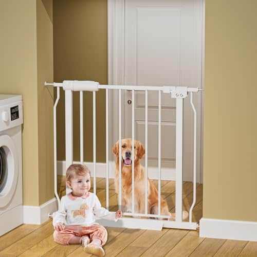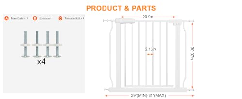 Puerta de Seguridad para Bebés HOOEN de 29-34 Pulgadas de Ancho para Escaleras y Puertas de Metal Interior, Barandillas de Presión para Niños o Mascotas (29″-34″) – Puerta a Presión para Bebés con Ancho Ajustable – Construcción Duradera de Acero Resistente – Doble Seguridad para Bebés – Fácil Instalación y Multiusos – Puerta de Bebé Auto Cierre y Fácil Operación