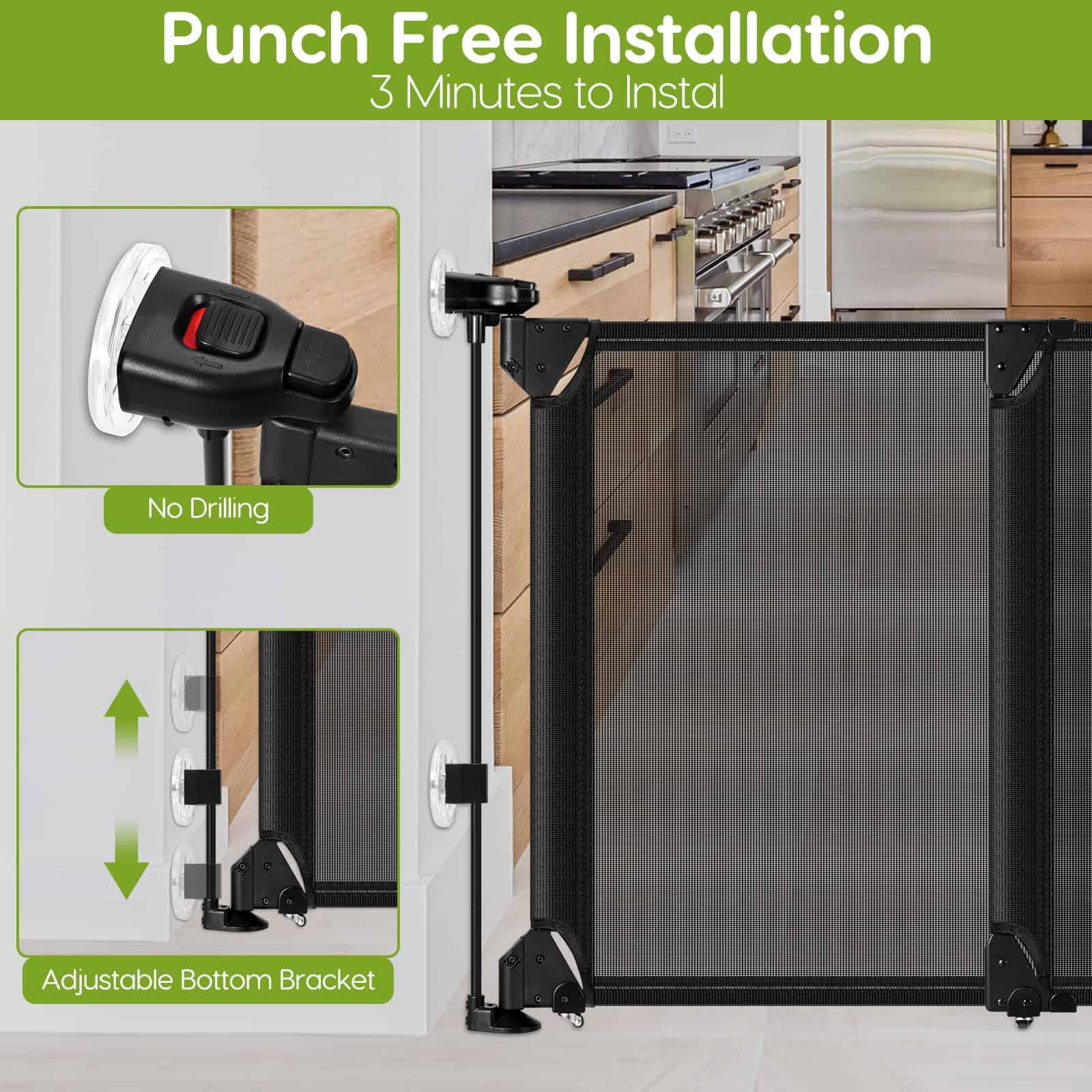 Puerta para bebés sin perforación para escaleras sin barra