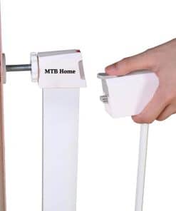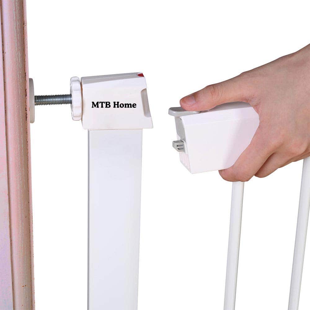 2. Ajustable: Incluye un kit de extensión de 5.5 pulgadas de ancho, varillas de montaje, 4 tazas de pared y tornillos. Perfecto para usar en puertas, pasillos y escaleras. La puerta se puede quitar rápidamente de la abertura para facilitar el almacenamiento.