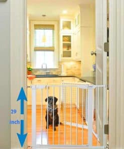 1. Puerta para perros de ancho extra: Se adapta a una amplia gama de aberturas para tu casa, se expande a escaleras y aberturas entre 29.5-32 pulgadas (sin extensión) y 29.5-37 pulgadas (con extensiones) de ancho. Nuestro producto tiene 4 tipos de juegos de kit de extensión (UNA extensión de 5.5″ para este modelo). ASEGÚRATE DE MEDIR Y ELEGIR EL TAMAÑO DE BUNDLE CORRECTO para tu hogar.