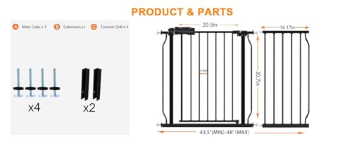 Puerta de seguridad duradera y segura: Nuestra puerta ancha para bebés en escaleras puede restringir efectivamente que su bebé o mascotas ingresen en áreas específicas, garantizando su seguridad, lo que le proporciona a usted y a su familia seguridad y tranquilidad. Instalación fácil: La puerta de seguridad interior y exterior para bebés adopta el diseño montado a presión, que se puede configurar rápidamente sin perforar, lo que la convierte en la elección ideal para padres y dueños de mascotas. Fácil de usar: Diseño de operación de una mano, los adultos pueden abrir fácilmente la puerta de bebé para escaleras con una mano, es fácil de abrir y cerrar. Perfecto para escaleras, puertas o pasillos, creando un ambiente de crecimiento seguro. Múltiples especificaciones: Nuestras puertas para bebés en puertas tienen diferentes especificaciones para que usted elija, adecuadas para diversos anchos de habitación. Asegúrese de medir correctamente antes de realizar la compra.
