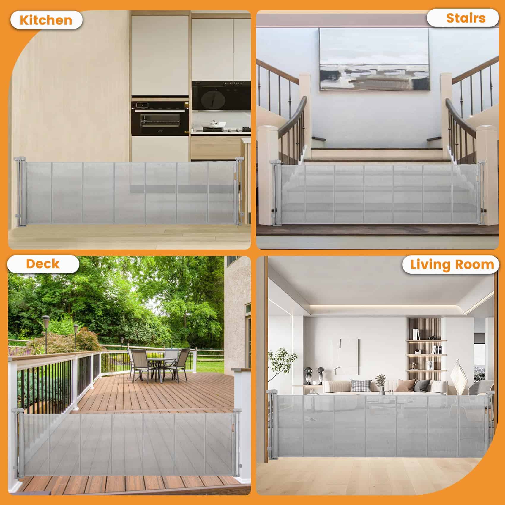 El diseño retráctil que ahorra espacio de esta puerta es perfecto para hogares modernos. No solo proporciona una barrera física para evitar el acceso a áreas restringidas, sino que también transforma tu espacio vital utilizando eficientemente la habitación disponible. Cuando no está en uso, simplemente enrolla la puerta para recuperar tu espacio sin obstrucciones.