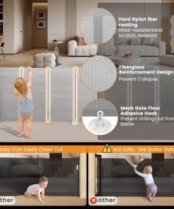 Experimenta la última combinación de conveniencia, seguridad e innovación con nuestra Puerta de Seguridad para Bebés Retráctil con Diseño de Malla. Esta puerta es un cambio de juego para padres y propietarios de mascotas, ofreciendo una solución confiable para mantener seguros y protegidos a tus pequeños y amigos peludos.