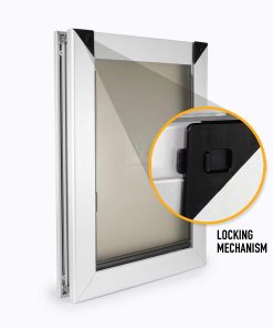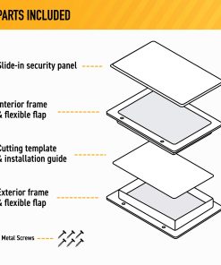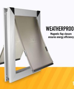 La puerta para perros de alta resistencia de doble solapa para puertas exteriores está diseñada para ser la última puerta para perros que necesitarás comprar. El marco duradero de aleación de aluminio funciona mucho más tiempo que las puertas de plástico convencionales, mientras que el cierre magnético a prueba de mal tiempo garantiza la eficiencia energética al evitar que el clima adverso entre en tu hogar. Además, al darle a tu perro la libertad de salir a jugar, usar el baño o simplemente tomar un poco de aire fresco por su cuenta, contribuyes a aliviar su ansiedad y a hacerlo más feliz y saludable. La puerta mediana tiene un tamaño total de 12 1/16″ de ancho x 16 7/16″ de alto x 2 9/16″ de profundidad, con una solapa/entrada de 8 3/4″ de ancho x 12 1/2″ de alto. Además, la puerta incluye un panel de seguridad que se bloquea en su lugar desde el interior en 2 puntos, garantizando que no haya visitantes no deseados mientras estás fuera de casa. Esta puerta para perros también cuenta con una garantía de 10 años, por lo que puedes estar seguro de que estás invirtiendo en un producto de alta calidad y durabilidad.