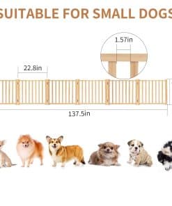5. Dimensiones: 6 PANELES – Dimensiones Abiertas: 138,19″ Ancho x 22,83″ Alto x 0,79″ Profundidad; Dimensiones Plegadas: 22,83″ Ancho x 22,83″ Alto x 4,72″ Profundidad; Las puertas de YOCAN son perfectas para su pequeño cachorro, si no está satisfecho con nuestro producto, no dude en contactarnos. Estamos listos para ayudarle.