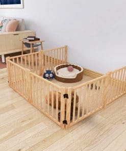 1. Material de Puerta para Mascotas de Pie de Madera: 100% Madera Sólida de Pino de Nueva Zelanda Natural, sin pintura, sin formaldehído, sin rebabas, inodoro y saludable, proporcionando un ambiente saludable y cómodo para la familia y las mascotas. Perfecto para su pequeña y mediana mascota como una cerca para mascotas, divisor de habitaciones y parque para mascotas todo en uno. Pies de Goma Antideslizantes Gratis para proteger su suelo.