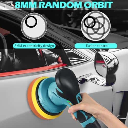 4. Ideal para Principiantes y Profesionales por Igual: Máquina pulidora de coche ideal. Fácil de operar con una curva de aprendizaje mínima pero ofrece resultados profesionales. El patrón de órbita de 8 mm proporciona un mayor control, precisión y resultados sin marcas. La batería de alto rendimiento proporciona suficiente potencia para pulir la mayoría de los vehículos con una sola carga y se recarga en solo 30 a 50 minutos para que nunca tenga que esperar mucho.