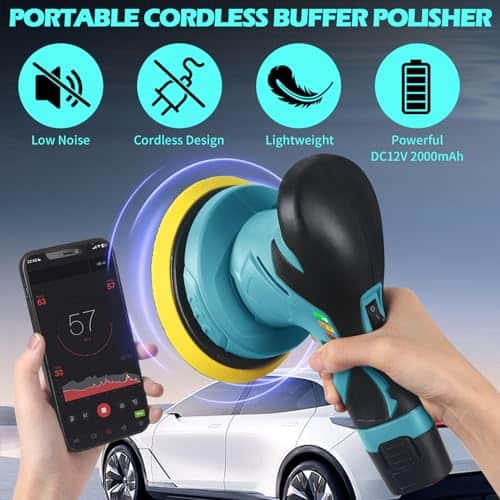 3. Ligero y Bajo Ruido: El pulidor inalámbrico pesa solo 3.9 libras con un mango ergonómico para máximo confort. Fácil de maniobrar para pulir superficies horizontales y verticales. Por debajo del umbral de 85 dB para posibles daños en la audición. No se necesita protección para los oídos para un uso seguro. El pulidor inalámbrico es más silencioso que los pulidores típicos para una experiencia de pulido más agradable.