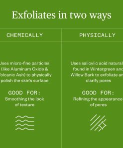 2. CUIDADO DE LA PIEL LIMPIO – La fórmula a base de plantas incluye Ceniza Volcánica que actúa como un exfoliante físico natural que retexturiza suavemente la apariencia de la piel, Wintergreen para refinar el aspecto de los poros y Willow Barn que actúa como un exfoliante químico natural, ayudando a clarificar la apariencia de los poros. Todos estos ingredientes se combinan para lograr un acabado suave y ultra suave.