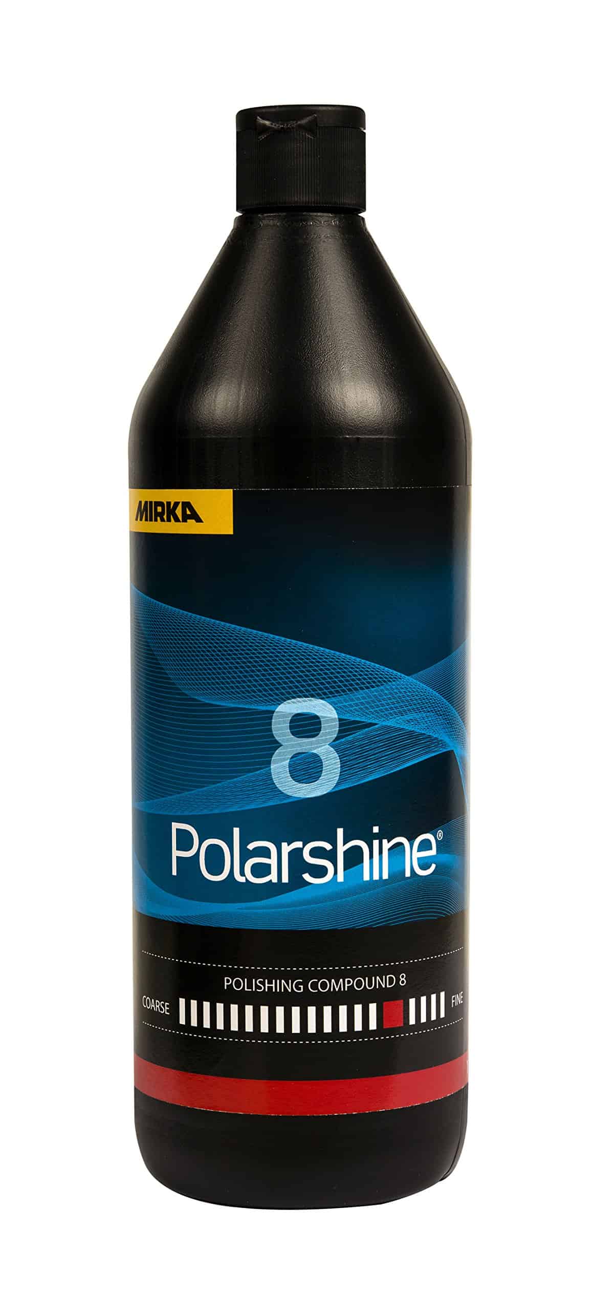 Permanece elimina marcas de lijado y marcas circulares mientras produce rápidamente un acabado de alto brillo; Pulidor Polarshine 8 (Fino). Diseñado para mantener baja la temperatura de la superficie. Para un pulido fácil y rápido, use con almohadillas de espuma después de lijar con discos de finura Mirka Polarstar SR (3, 5 o 7 micrones). Adecuado para usar en la mayoría de las pinturas.