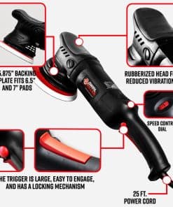 Pulidora Adam’s Polishes Swirl Killer 21mm es la herramienta ideal para corregir y pulir la pintura de tu auto. Su órbita extra larga garantiza resultados de corrección rápidos y eficientes. Con un diseño cómodo, operación suave y baja vibración, esta pulidora te brindará una experiencia de trabajo agradable. Su gran capacidad correctiva te permitirá eliminar imperfecciones sin dañar el acabado de tu auto. Compatible con almohadillas de pulido de 6.5″ y 7″, esta pulidora hará que tu auto luzca como nuevo.