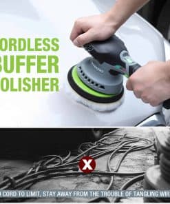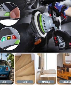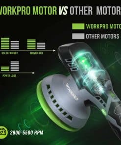 LIGHTWEIGHT & PORTABLE: WORKPRO cordless buffer polisher is ONLY 2.3 POUNDS weight. Easy to carry and storage. You can get the car polishing done with less time and less effort. Our DA polisher gets rid of traditionally cumbersome wires. You just plug in the battery without the limit of place or worrying about the cord getting tangled. HIGH PERFORMANCE & POWERFUL: This buffer polisher has a built-in high-efficiency brushless motor, which could achieve an idle speed of up to 5500 RPM for polishing and brightening wood and metal products. OFF-AXIS DESIGN: This 6 inches random orbital polisher allows a swirl-free polishing for ensuring a uniform finish, you can operate easily without the concern of over-polishing by using a handy machine, friendly for beginners on all painted surface. 2 PCS RECHARGEABLE BATTERIES: The DA polisher is equipped with 2pcs 12V lithium rechargeable batteries. Large battery capacity and fast charging. You can work non-stop for almost 1 HOUR with 1 battery, and the charging time is less than 66min, which ensures the long-time work. WIDE APPLICATION: Adjustable speed and a variety of pads allow you for polishing and removing stains on vehicles, cleaning tiles, sanding wood, polishing furniture, waxing moto, refreshing wooden floor and etc. CLEANING KIT & ACCESSORIES: Car polisher comes with 2 12V 2.0Ah Lithium batteries, 1 charger, 10 polishing bonnel, 2 wavy sponge pad, 2 flat sponge pad, 2 woolen buffer pad, 4 sandpaper, 2 microfiber cleaning cloth, 1 portable storage box. CHARGING INSTRUCTIONS: This cordless buffer has a battery status reminder with 3 colors LED lights. The green light is always on when fully charged and working normally. Lights up yellow when battery is low, and the red light will be on when charging. NOTES: It is not recommended to use any power tool for a long long period of time. If the machine overheats, the protection mechanism will be activated and the power will be automatically cut off. At this time, the machine needs to rest for a while.