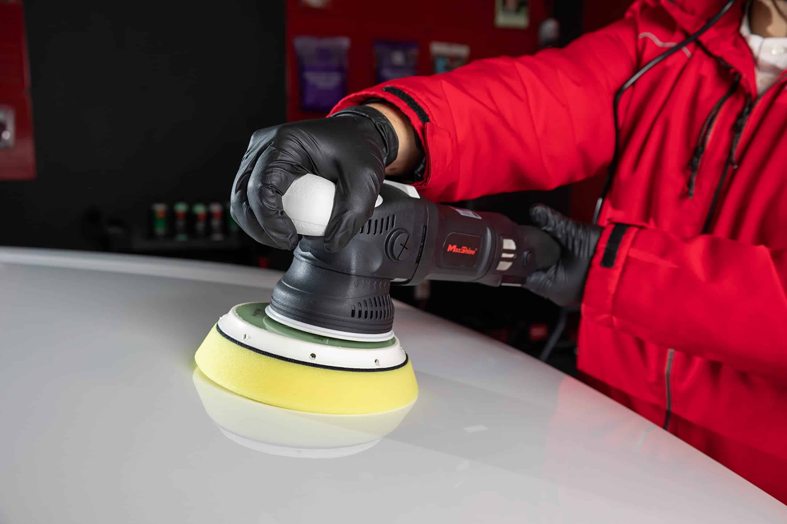 Pulidora de Acción Dual de 1000W M21 PRO de Maxshine La pulidora de acción dual M21 Pro de Maxshine está diseñada para hacer que el detallado sea más seguro y fácil. La máquina elimina fácilmente marcas de remolino y arañazos, resultando en un acabado perfecto, una y otra vez. Además, la máquina es ideal para distribuir selladores y ceras en una capa uniforme para una protección completa. Especificaciones: Tamaño del disco: 150 mm, 6″ Tamaño de la órbita: 21 mm Tamaño del husillo: 5/16″ 0 Dial de Velocidad Variable de 6 No de Velocidad sin Carga: 1,800 a 4,800 opm Peso Neto – 2.3 kg (aprox.) Suministrado con una placa de soporte de 150 mm (6″), mango en forma de D Características Clave: Motor de 1000 W Resistente Cable Resistente de 4 Metros Orificio de mango en forma de U Estuche de Tela Asa CNC mecanizada Botón de Bloqueo Automático del Interruptor