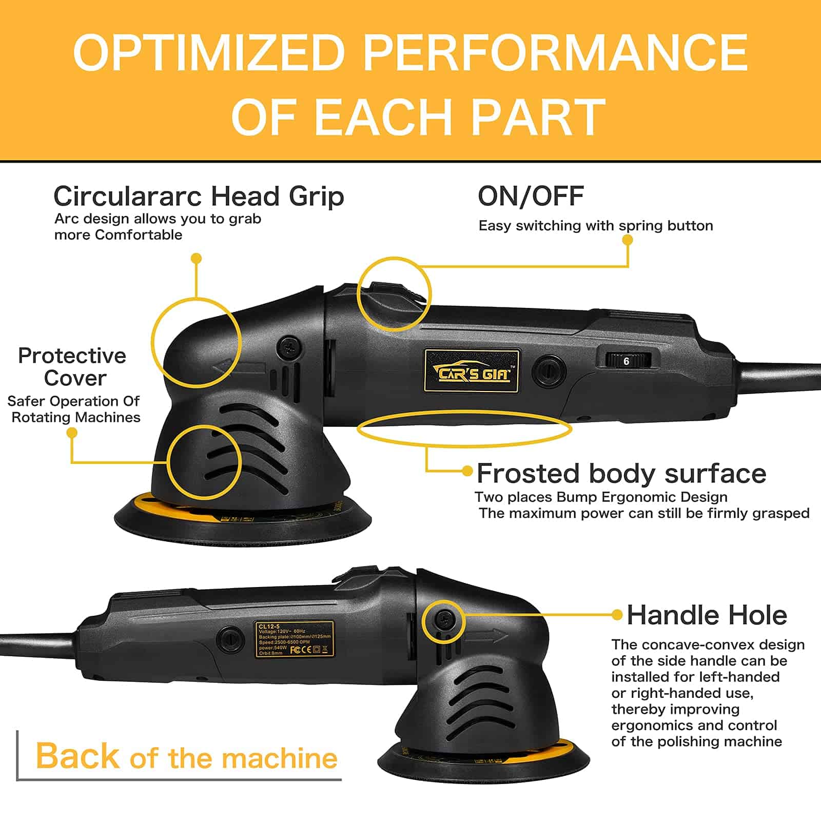 Conjunto completo de kits de inicio que incluye 1 pulidora de coche, 1 placa de respaldo de pulido de 5 pulgadas, 3 almohadillas de lana de 5 pulgadas, 3 almohadillas de espuma de 5 pulgadas, 1 mango lateral, 1 llave inglesa, 1 destornillador, 1 par de escobillas de carbón, 1 manual de usuario, garantía de 1 año y servicio al cliente confiable en 24 horas. Kit de detalle de automóvil multifuncional, perfecto para pulir y quitar remolinos, arañazos y defectos de todos los vehículos pintados, control de velocidad variable de 6 velocidades le permite ajustar la velocidad de la pulidora de velocidad variable según las diferentes aplicaciones. Potente pulidor con motor potente y plato giratorio preciso, puede ajustar fácilmente la velocidad de 2500 a 6500 OPM sin detenerse. Operación sencilla, adecuada para principiantes y usuarios avanzados, cada detalle se realiza rápidamente y fácilmente. El regalo perfecto y el servicio excelente, este conjunto de pulidora de coche es el mejor regalo para abuelos, padres, esposas, esposos, amigos e hijos, adecuado para cualquier vacaciones, Día de San Valentín, Cumpleaños, etc.