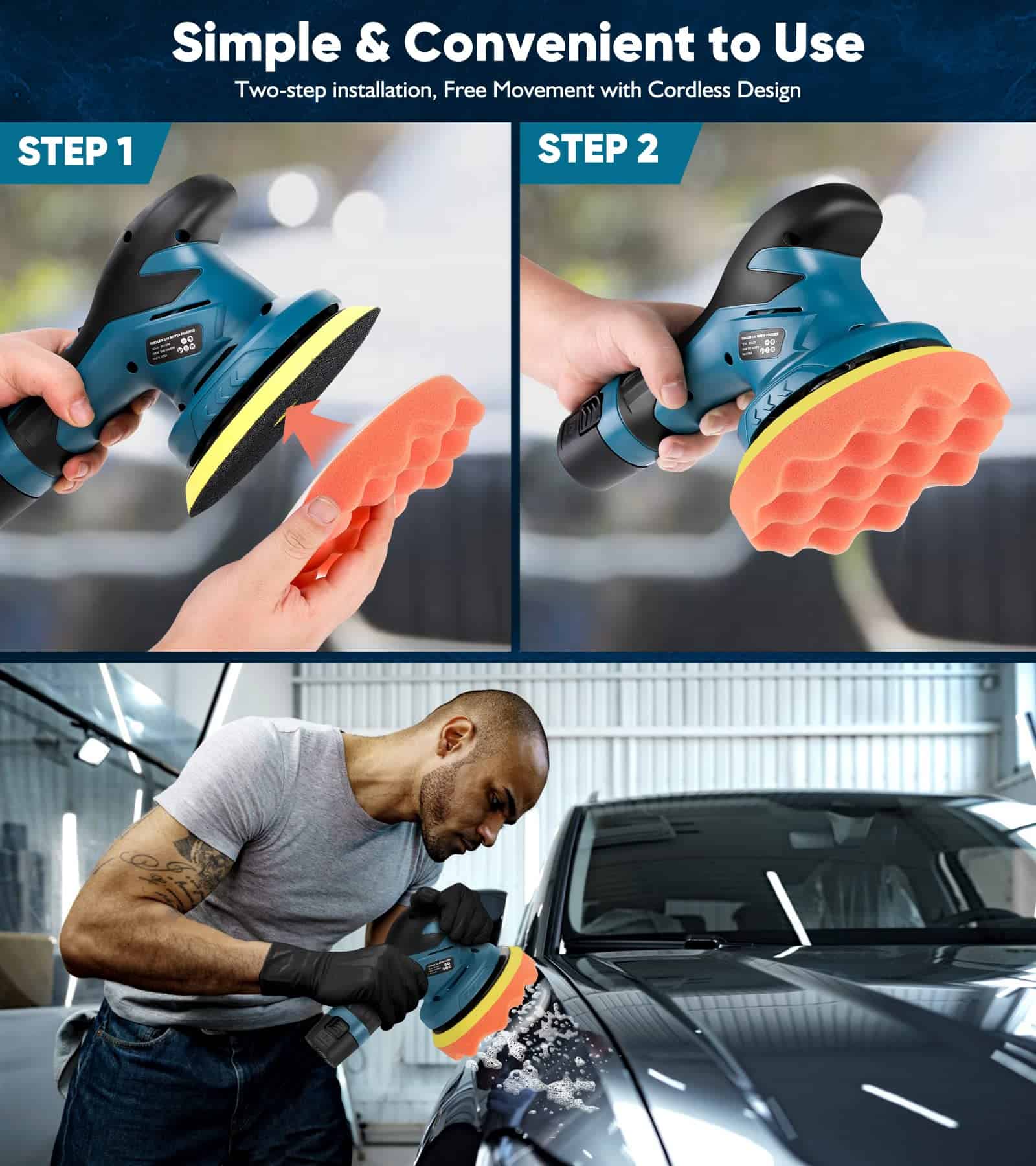 2. Ajuste de 6 velocidades, pulidora de automóvil multiusos Incorpora 6 controles de velocidad diferentes, que pueden ajustarse a las necesidades respectivas. Totalmente ajustable 2,500-5,000 OPM perfecto para ceras, selladores y esmaltes. También es un buen asistente para limpieza del hogar y pulido de motocicletas.