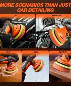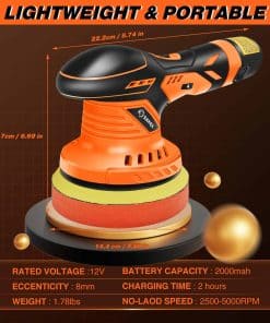3. Ligero y Portátil: La pulidora para automóviles de Saker es fácil de manejar, conveniente, pesa solo 1.78 libras, lo que la hace fácil de llevar y almacenar. Es rápida para principiantes y no dañará el acabado de tu automóvil. Perfecta para trabajos al aire libre.
