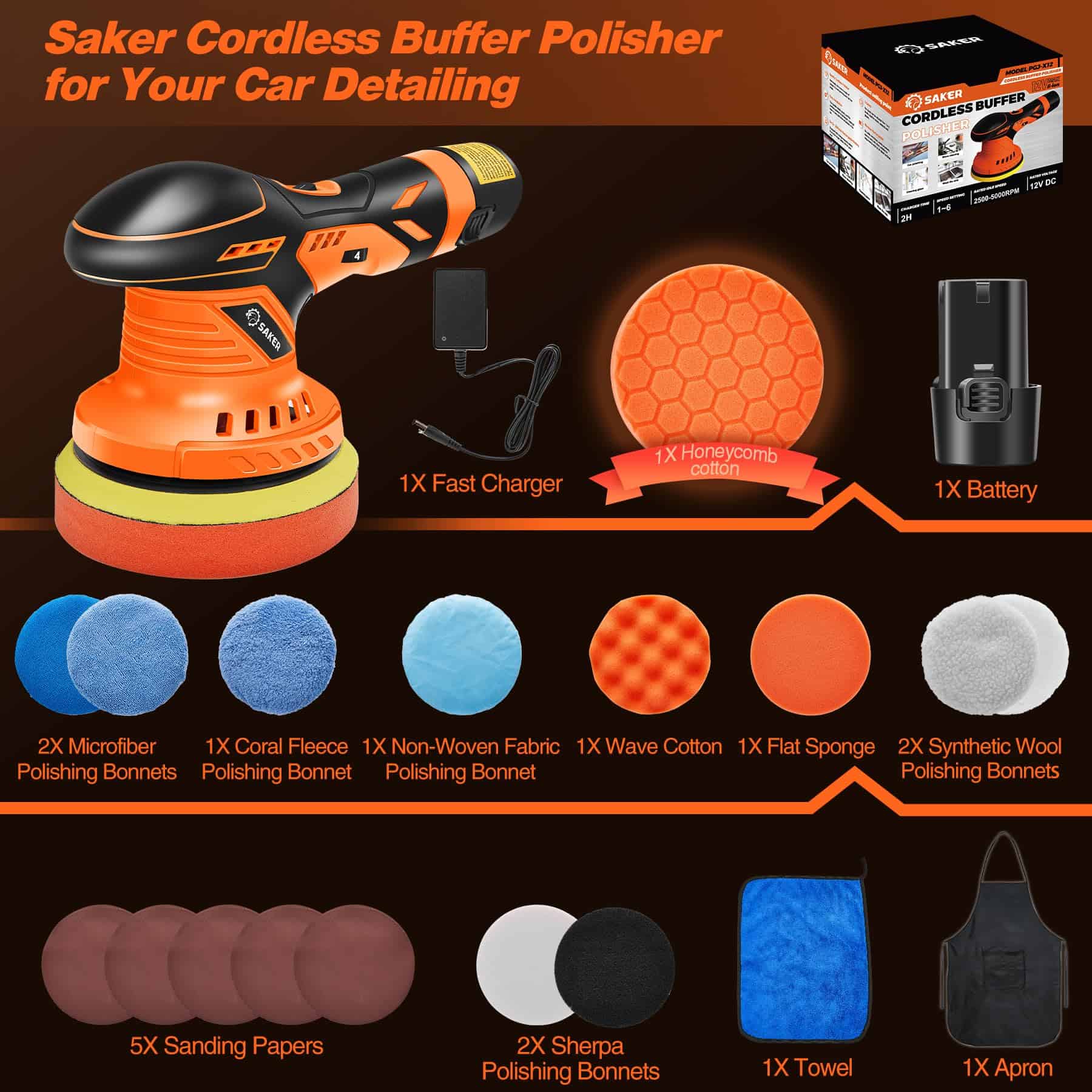 Pulidora Inalámbrica Saker, 6 Pulgadas Kit de Pulido de