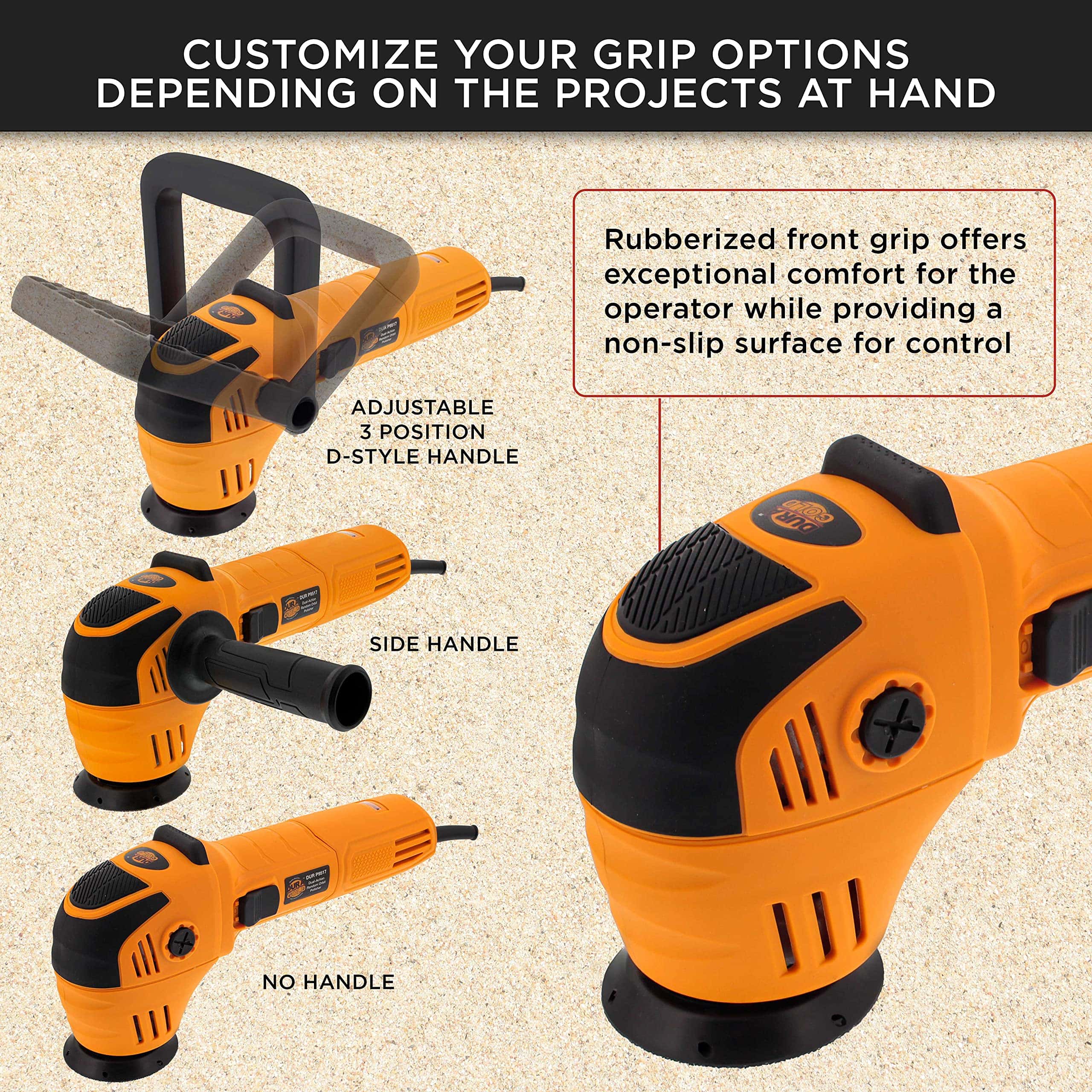 1. Una pulidora y lijadora de órbita aleatoria dual profesional ergonómicamente diseñada de alta resistencia de 6 amperios, 750 vatios con un diámetro de 6″. Una pulidora de calidad premium con control de velocidad variable de 2000 a 5500 OPM (órbitas por minuto). 2. La pulidora tiene un patrón de órbita aleatoria de 1/2″ (12 mm), y también tiene un diseño de contrapeso de precisión que proporciona una operación más suave con menos vibración y más estabilidad, lo que facilita lograr resultados libres de remolinos. 3. La pulidora viene con un mango lateral tradicional y un mango en forma de D sobre la parte superior, además de un juego de cepillos de carbón de repuesto. También incluye un plato de bloqueo y liberación de 3″ junto con una almohadilla de pulido de espuma de 3″. 4. Una pulidora ideal para cortar y pulir los recubrimientos automotrices oxidados más difíciles, las capas transparentes más duras y los arañazos de lijado de color, y luego pulir el acabado para resaltar el brillo de un automóvil de exposición de nivel superior. 5. Compre con confianza. Si no está satisfecho con esta pulidora en cualquier momento dentro de un año desde la compra, le proporcionaremos un reembolso o un reemplazo.