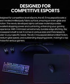 El mouse pad eS-2 está especialmente diseñado para jugadores de eSports. La superficie de tela de poli tratada térmicamente ofrece un movimiento suave y preciso de tu ratón, mientras que las costuras de borde minimalistas y duraderas garantizan durabilidad incluso con un uso a largo plazo. Disponible en una variedad de tamaños y grosores para satisfacer tus necesidades especiales.