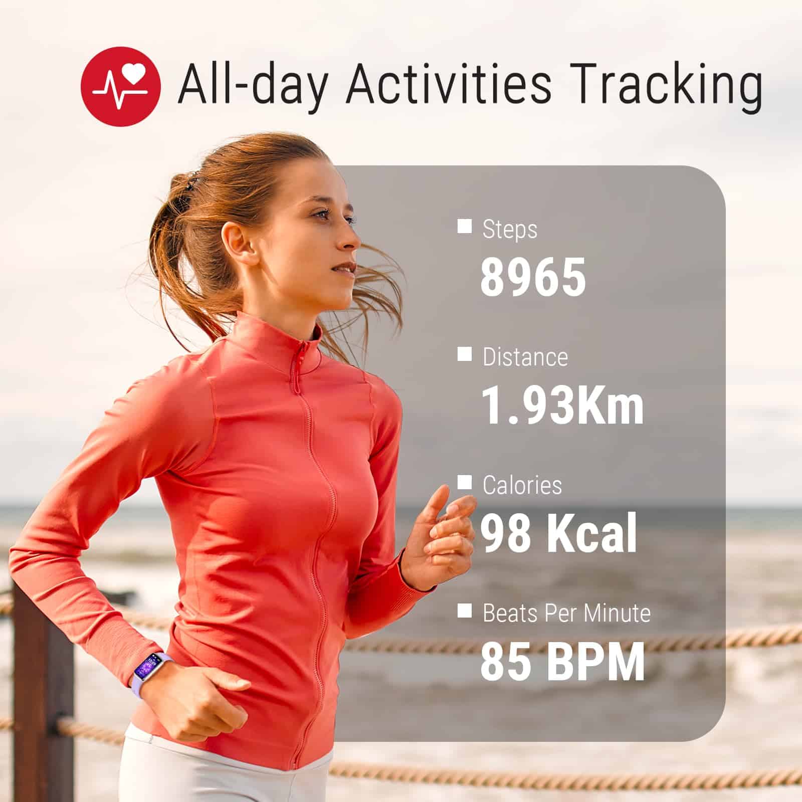 1. Seguimiento de Fitness Todo el Día: La pulsera de actividad H98 te ayuda a monitorizar varios aspectos de tu viaje de fitness. Realiza un seguimiento preciso de tu recuento diario de pasos, calorías quemadas y distancia recorrida, permitiéndote establecer y alcanzar tus objetivos de fitness.