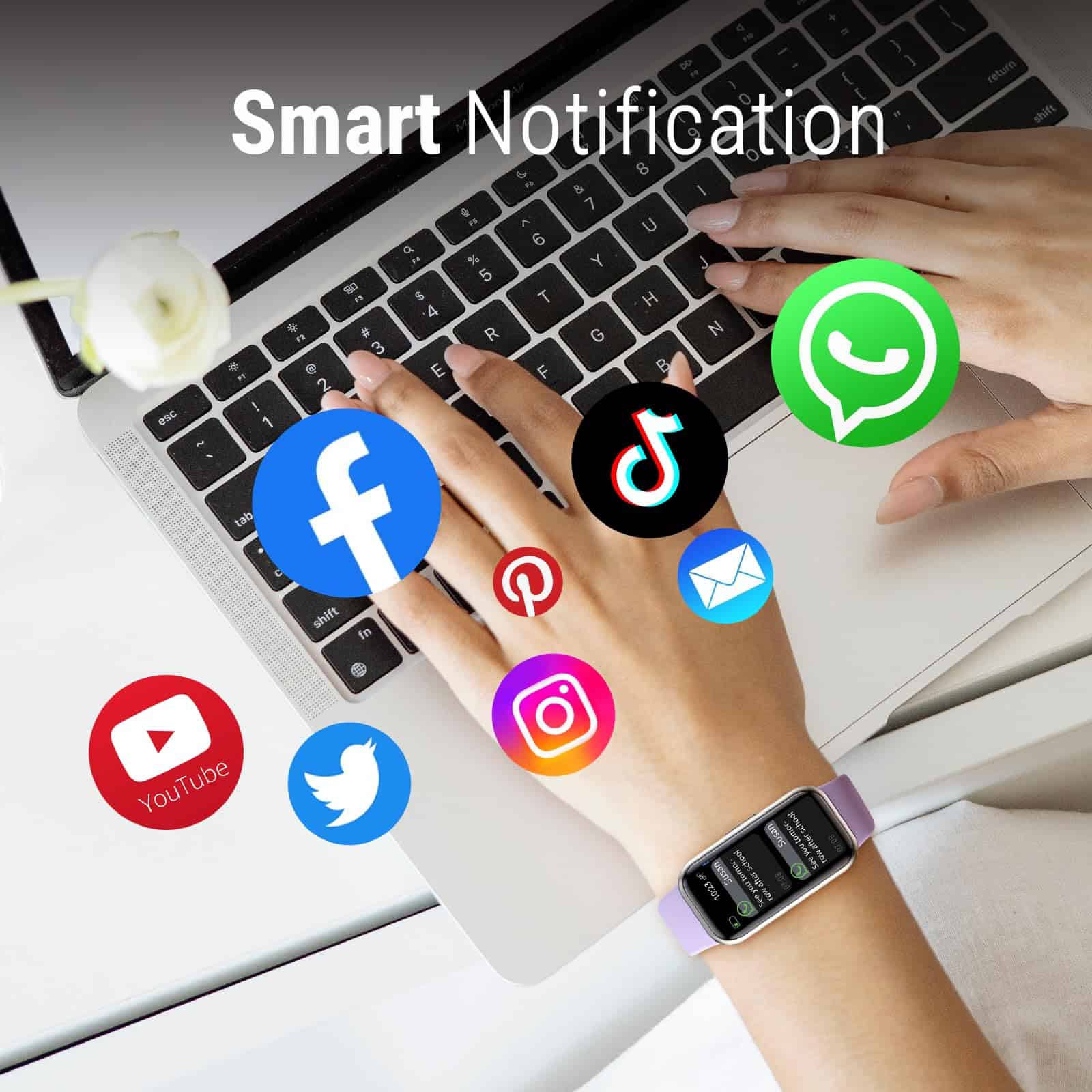 5. Notificaciones Inteligentes y Funciones de Conveniencia: Mantente conectado mientras estás en movimiento con la pulsera de actividad H98. Envía notificaciones vibratorias para llamadas y mensajes entrantes, asegurando que nunca te pierdas alertas importantes. El dispositivo también ofrece funciones como control de música, cronómetro, rechazo de llamadas, encontrar teléfono, ajuste de brillo, no molestar, ajuste de alarma, recordatorios de actividad y recordatorios de bebida, mejorando tu conveniencia diaria.